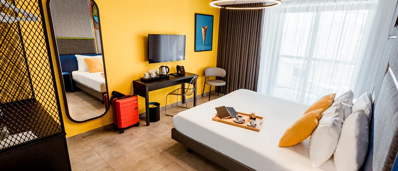 A modern, 8 emeletes design hotel összesen 110 szobával rendelkezik. A vendégeket recepció és lobby fogadja, a szállodában lift és légkondicionált közösségi terek állnak rendelkezésre. A hotelben négy étterem működik, emellett hotelbár és sky bar is található.